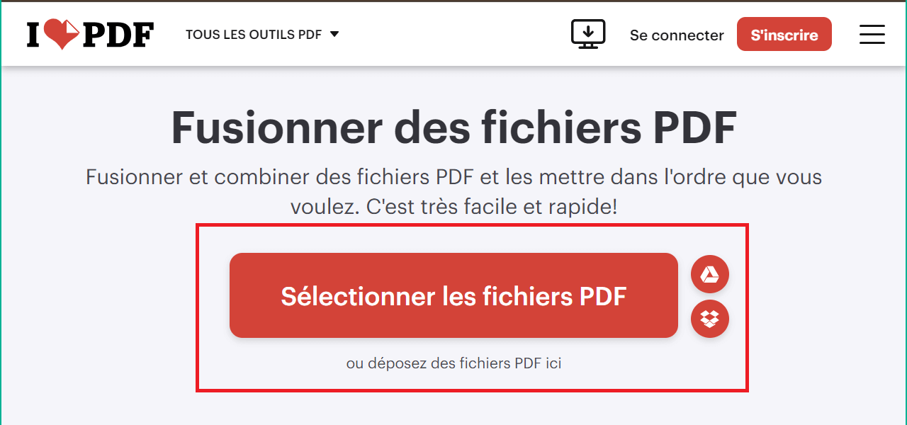Vous pouvez glisser-déposer vos fichiers PDF sur le site web d'iLovePDF.