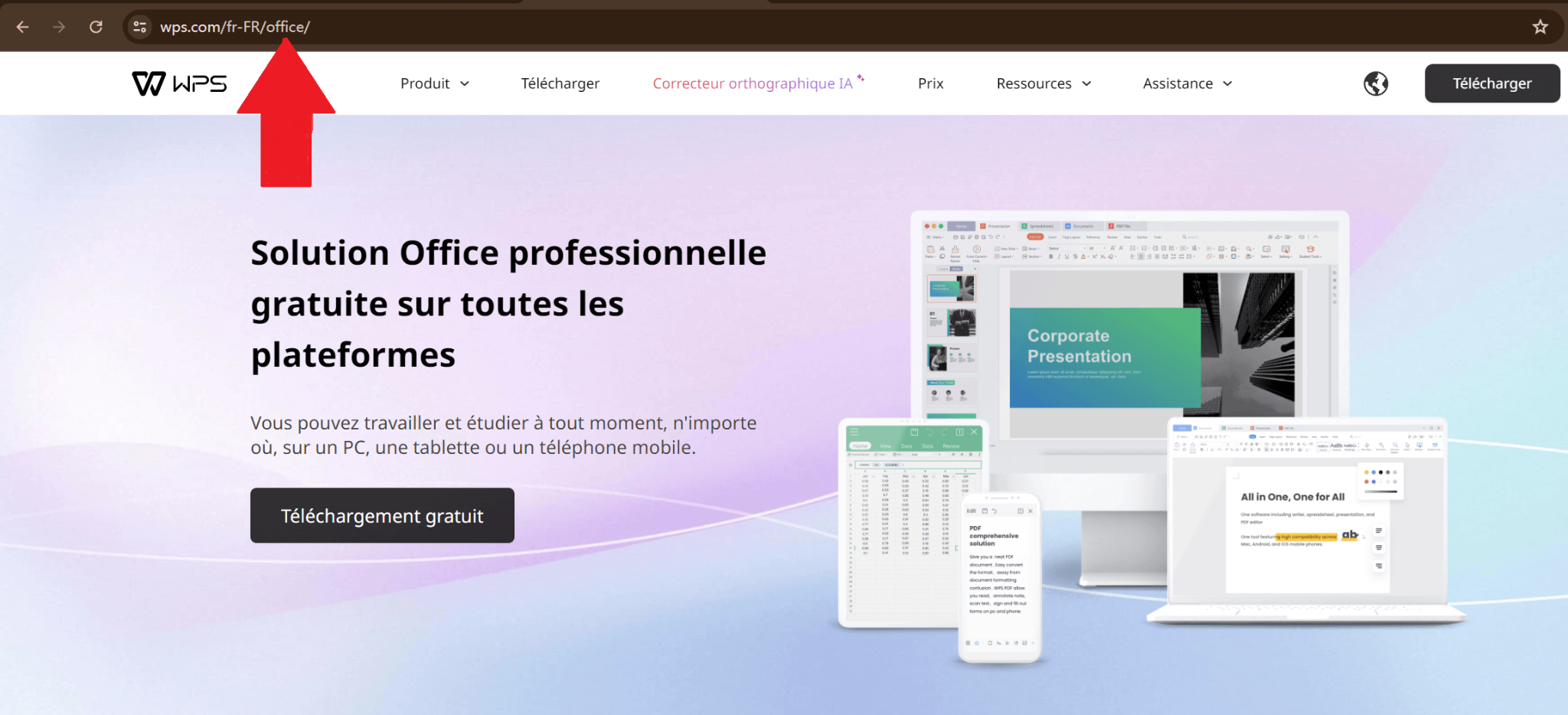 Étape 1 : Allez sur le site WPS Office : https://www.wps.com/fr-FR/office/