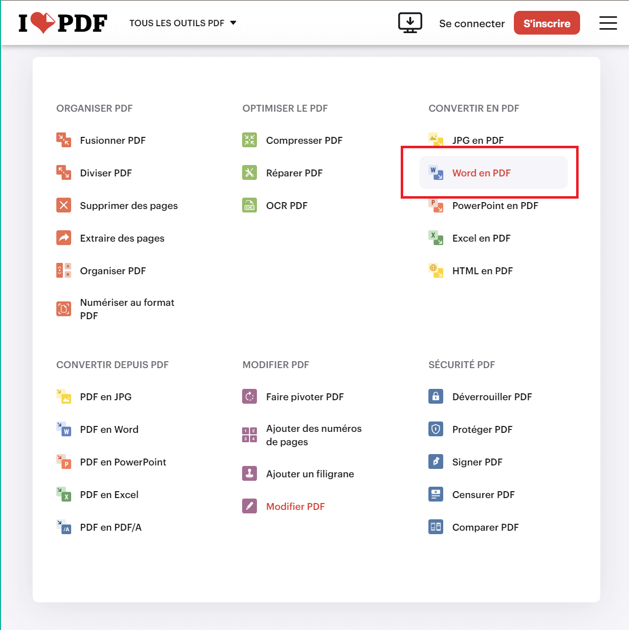 Pour utiliser iLovePDF en ligne, veuillez suivre ces étapes :