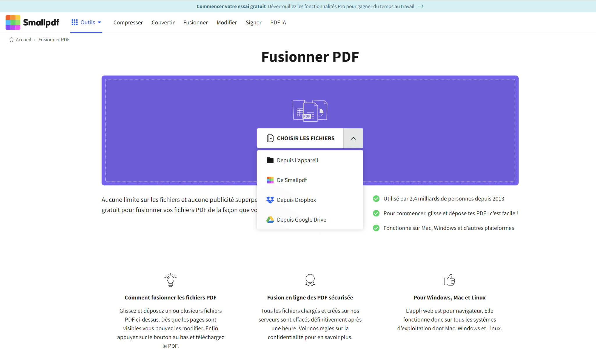 Comment Fusionner des PDFs en Ligne avec Smallpdf