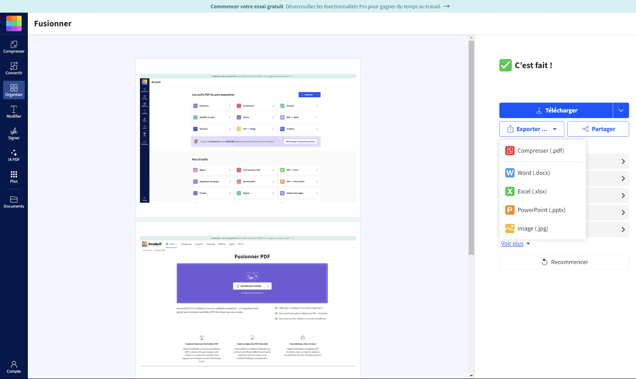 Le meilleur, c'est que tout le processus peut être conclu en quelques minutes. Les utilisateurs peuvent également accéder gratuitement à toutes les fonctionnalités de base sur toutes les fusions de PDFs de Smallpdf.