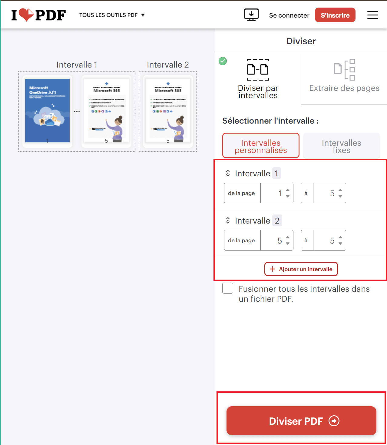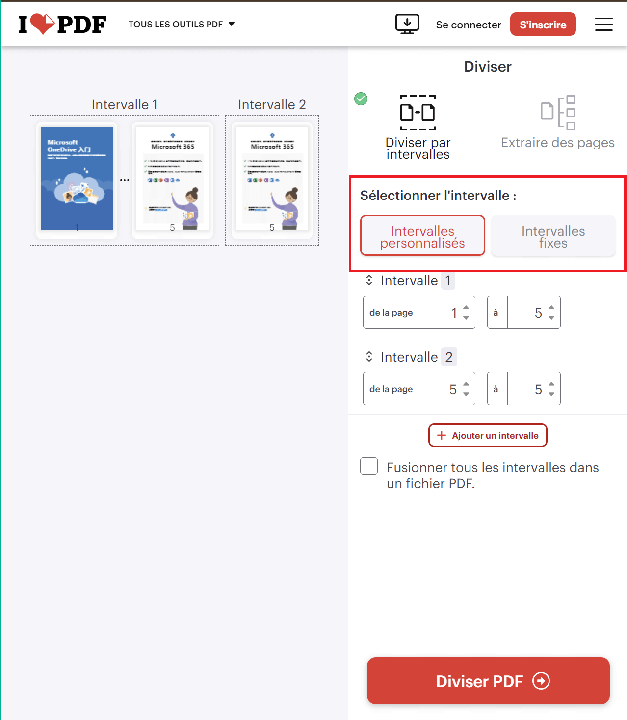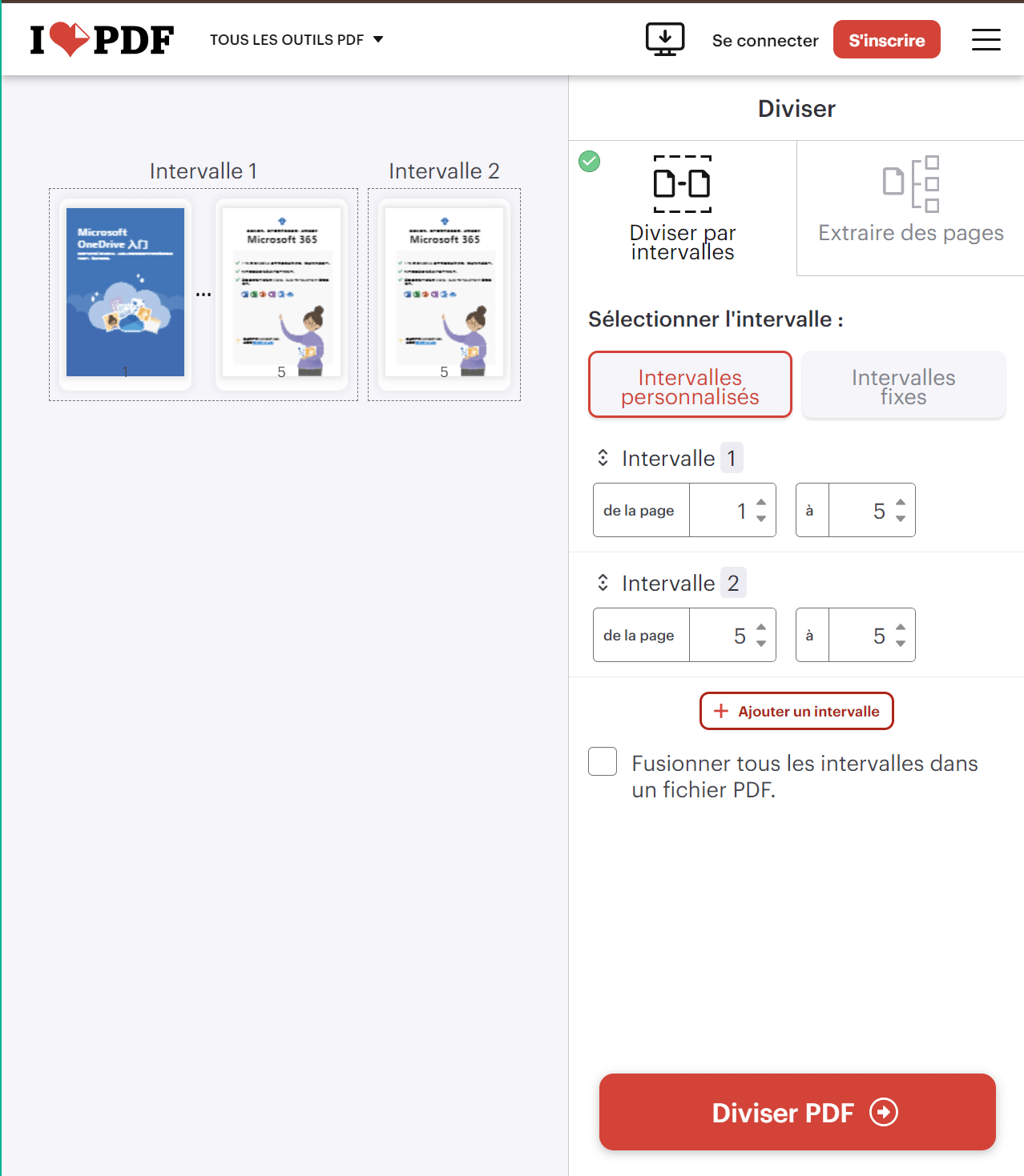Il existe une option dans iLovePDF pour diviser les pages en plages fixes. Vous pouvez diviser le fichier PDF directement en pages fixes en utilisant cette fonctionnalité. Le processus est similaire à la division du PDF en utilisant la méthode mentionnée ci-dessus, et la différence est qu'au lieu de donner une plage à la fonctionnalité de division iLovePDF, elle le fait pour vous sans spécifier la plage.