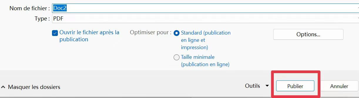 Étape 5 : Cliquez sur Publier pour enregistrer le PDF.