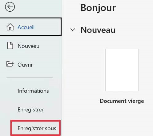 Méthode 1 : Utilisation de l'option Enregistrer sous