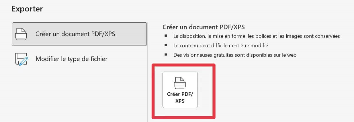 Étape 4 : Cliquez sur le bouton Créer un PDF/XPS.