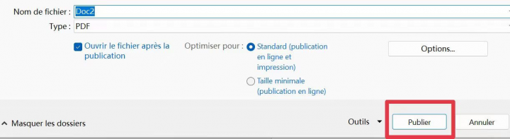 Étape 5 : Cliquez sur Publier pour enregistrer le PDF.