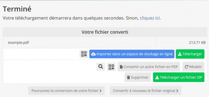 Étape 4 : Le fichier converti est automatiquement téléchargé au format PDF.