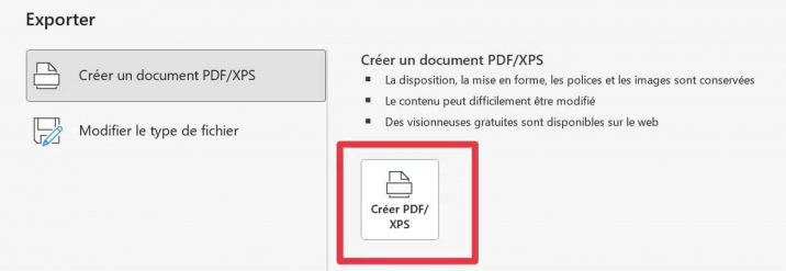 Étape 4 : Cliquez sur le bouton Créer un PDF/XPS.