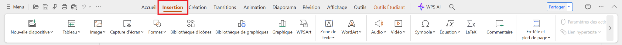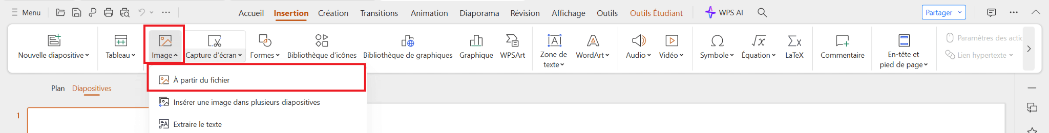 Pour insérer une image dans WPS Presentation :