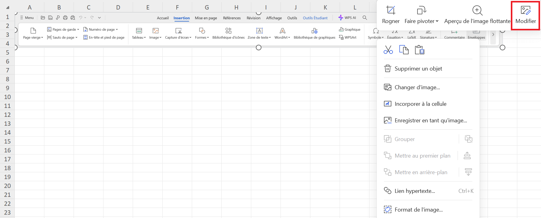 Pour commencer, insérons une image dans notre feuille de calcul en utilisant WPS Spreadsheet :