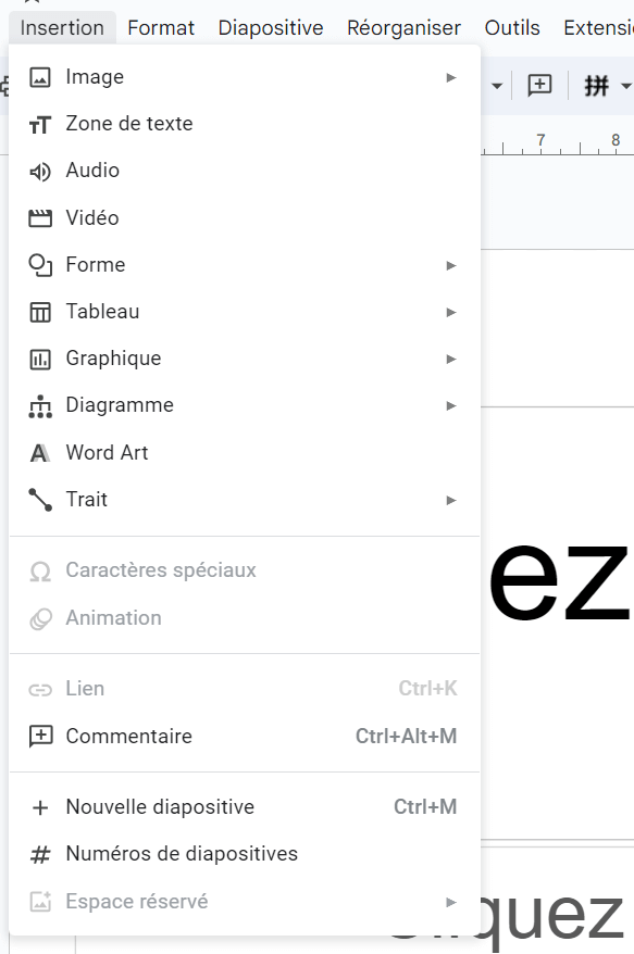 Intégration avec d'autres applications de Google Workspace : Slides peut être facilement intégré avec d'autres applications de Google Workspace comme Google Docs, Google Sheets et Google Drawings.