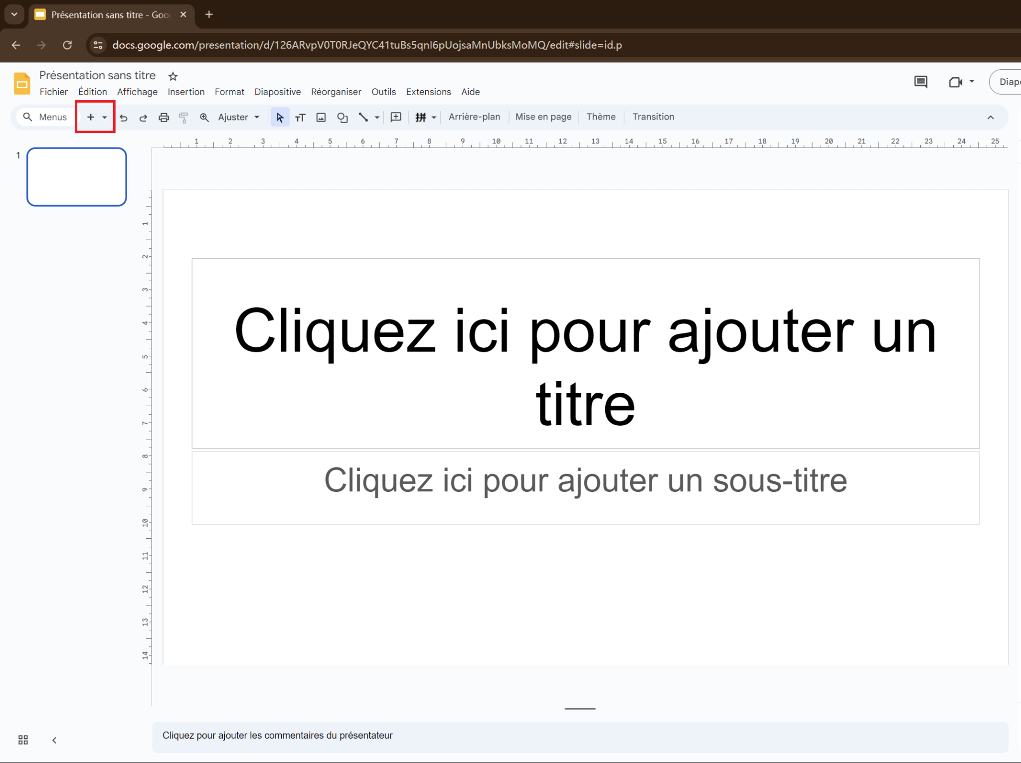 Étape 4 : Ajoutez des diapositives : Cliquez sur le bouton "+" dans la barre latérale gauche pour ajouter de nouvelles diapositives.