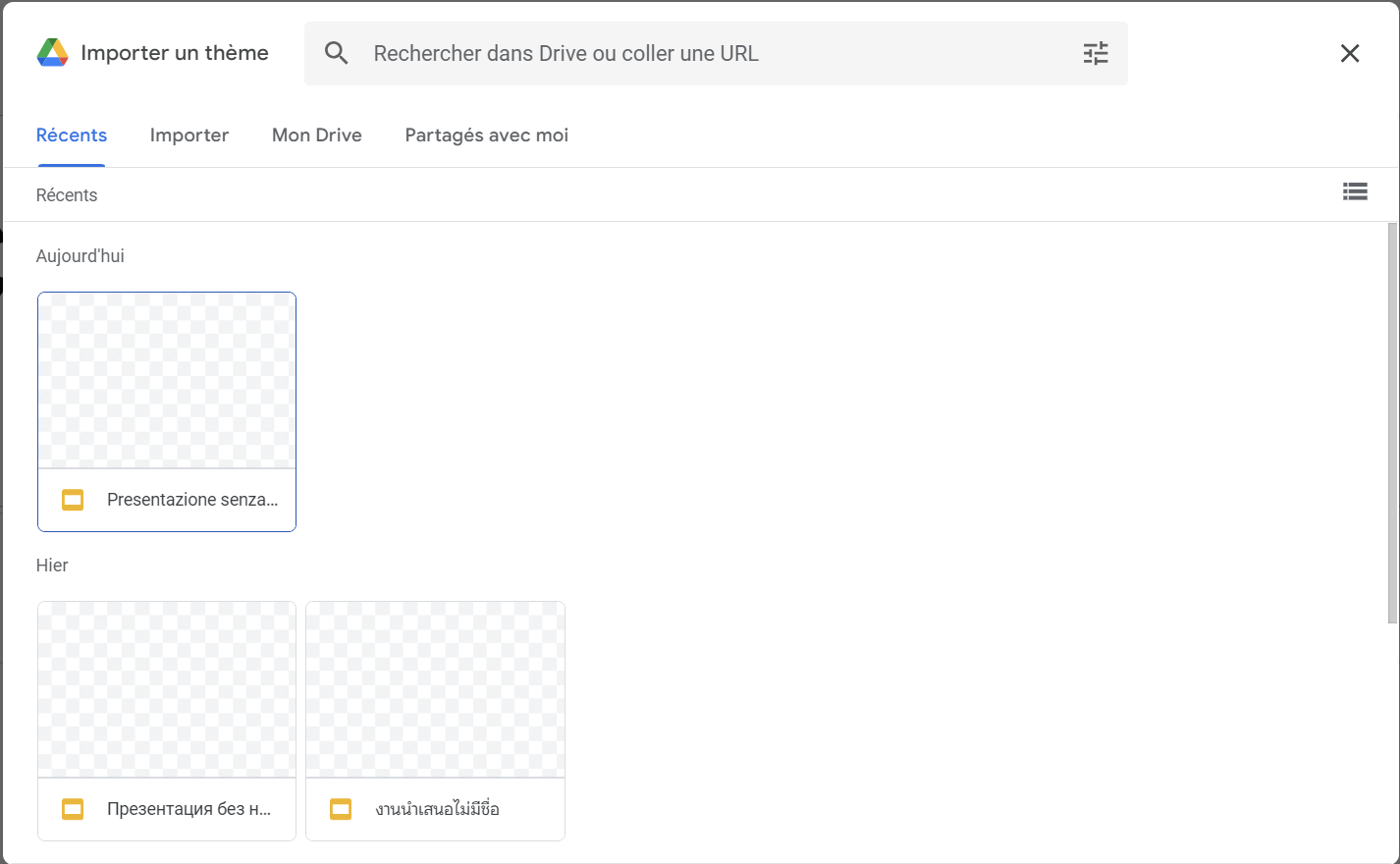 Étape 6 : Double-cliquez sur la présentation Google Slides à partir de laquelle vous souhaitez importer le thème.